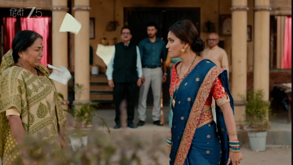 Standing at a distance, Siddu overhears the entire confrontation. He watches as Ganga Mai pleads: “You should show me my place. How dare you send us a notice from the colony?” Her voice trembles with anger and sadness. All this while, Siddu questions himself inwardly: if he truly loves Sneha, how can he stand by when her mother is insulted and humiliated?