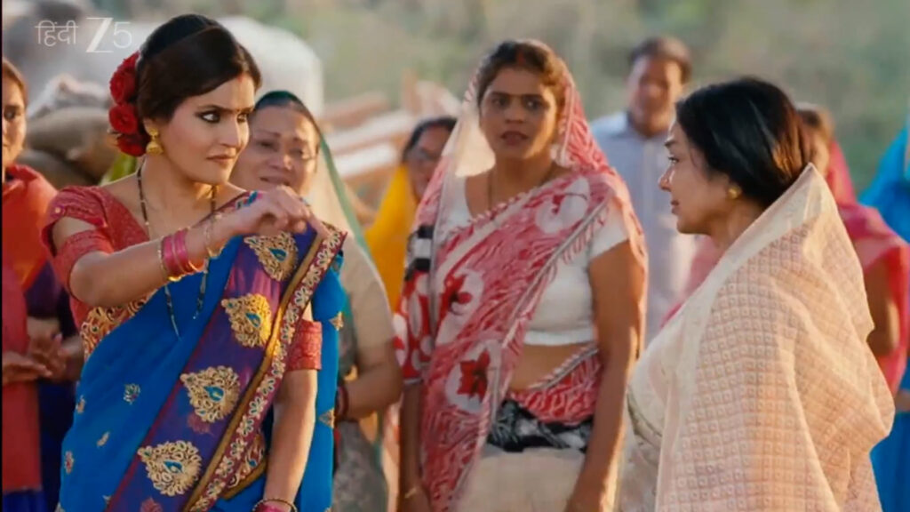 But Durgawati isn’t done yet. She demands that Ganga come before the entire panchayat and beg forgiveness by touching the feet of Indumati. It is a call for public humiliation — a plea aimed at destroying Ganga’s dignity. As Ganga is ushered forward to comply with the demand, her heart races, torn between saving her home and preserving her self-respec
