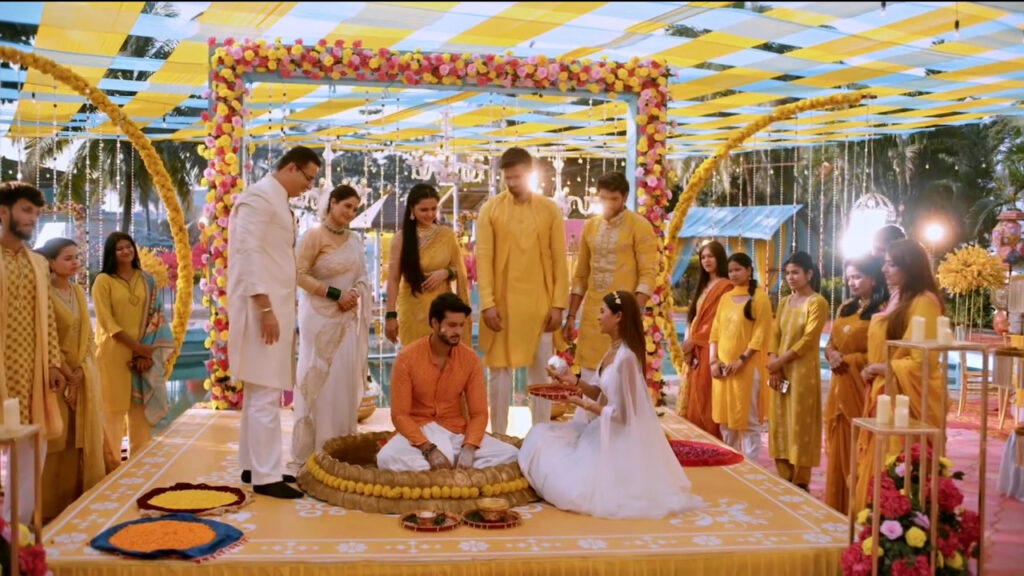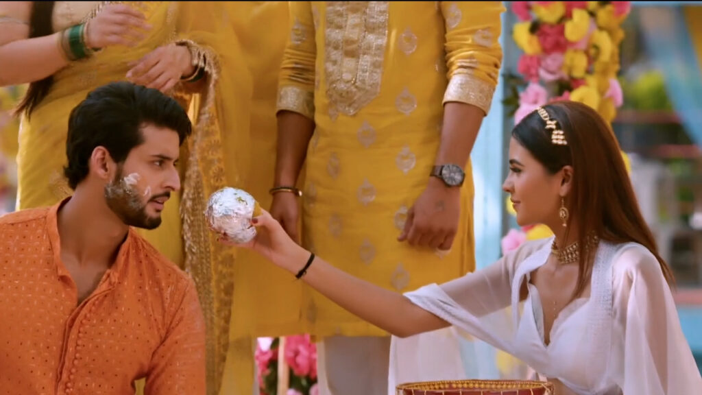 Anika doesn’t stop at words. She plots slyly and mixes a forgetfulness drug into the laddu meant for Ved. On Haldi day, there is a custom: the bride’s sister feeds the bridegroom a laddu with her own hands. Anika seizes this ritual to execute her scheme—she wants to slip the spiked laddu into Ved’s mouth herself, making him unconscious or confused.