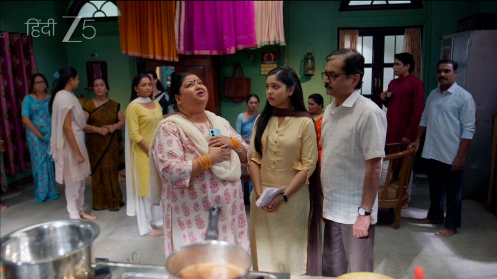 Meanwhile, Mira visits the same location where Anu’s contract is with the family. She says politely, “I hope you’ve given the contract to a good person… What is their name?” The others say: “Anu Sharma.” Mira hands Anu the menu and asks if she has the menu ready. Later at home, Anu reads the menu aloud to everyone—her mother and neighbours listen, but then someone comments: “We hardly cook such big meals for so many people!” There’s a hint of worry creeping in as they realise the challenge ahead.